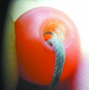 而玛瑙相对较脆,打孔后孔道截面棱角分明,甚至会出现崩裂,一般玛瑙的孔道是不会做出凹孔效果的。
