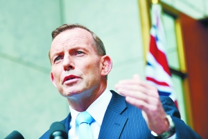 9日,在澳大利亚首都堪培拉议会大厦,澳大利亚总理托尼·阿博特在新闻发布会上讲话。当日上午,澳大利亚执政的主要政党自由党举行党内投票,现任党首、联邦总理阿博特赢得大多数自由党议员支持,保住总理一职。新华社/图