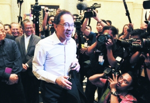 10日,马来西亚反对党领导人安瓦尔·易卜拉欣(前)抵达位于普特拉贾亚的马来西亚联邦法院。当日,马来西亚联邦法院就安瓦尔鸡奸案做出终审裁决,宣布维持上诉法庭对其做出的五年有期徒刑的原判。安瓦尔1993年任马来西亚副总理,在2008年被控鸡奸一名男性私人助理赛义夫。法院在2012年以缺乏证据为由宣判他无罪,但上诉法院去年3月推翻无罪判决,判处安瓦尔有期徒刑五年,其后安瓦尔提出终审上诉。新华社/图