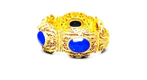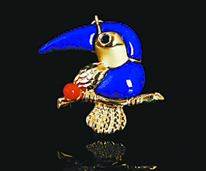 欧洲人崇尚纯洁,理解不了中国人的含蓄美,喜欢通透的宝石,因此青金、绿松这一类石头自投入使用开始,身上始终散发着一股浓浓的东方气息。尤其是青金石手串和佛珠,用张爱玲的话说:“总给人一种四平八稳的沉着气象。”当时古埃及亦好青金,其饰物配色自然与中国千差万别,这里只好挂一漏万了。