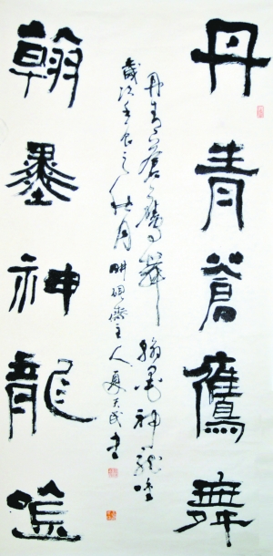 在夏天民的书作中,亦今亦古的艺术风格自然呈现出不难读懂的历史感和当代特征。历史感表现为他对帖派书法精华从意蕴到形式的深入体会和把握;当代性则表现为他的个性特征,从中透露出资质、才情、学养、心路历程的诸多信息。在风格上,他的书法创作追求文气、书卷气和自然美。他喜欢优雅的东西,粗、精、收、放都可能达到优雅,雅而不俗。他强调个性,也强调个性的雅化。细辩其书,流落自然的笔致溢出雅正清逸的气息,这是心性、境界、学养、才情的共生体,从中可以解读出属于书法家生命形态的更多东西。