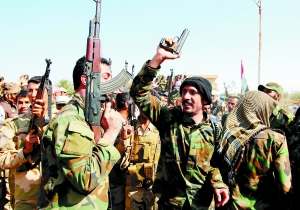 1日,在伊拉克巴格达以北的吴德海姆大坝,伊拉克士兵与什叶派民兵在集合时喊口号。当日,伊拉克士兵和什叶派民兵在吴德海姆大坝集结,准备参加清缴“伊斯兰国”武装分子的军事行动。伊拉克总理阿巴迪当晚在伊北部城市萨迈拉宣布,清缴盘踞在伊北部萨拉赫丁省的极端组织“伊斯兰国”武装分子的大规模军事行动正式开始。新华社/图
