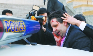 据韩国媒体报道,5日上午,美国驻韩国大使马克·利珀特在首尔参加活动时遭到不明身份男子袭击,脸部受伤并造成大量出血,目前已被送往医院。犯罪嫌疑人已被韩国警方控制,事件原因正在调查中。新华社/图