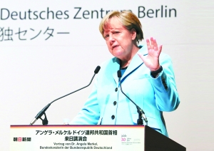 9日,德国总理默克尔在日本东京发表演讲。正在日本访问的默克尔当日在演讲时指出,正视历史是德国重返国际社会的前提,二次大战结束70周年对德日意义重大。新华社/图