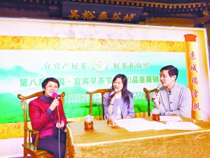 3月3日一早,四川宜宾市长徐进和吴裕泰总经理孙丹威邀请著名男高音歌唱家李光羲、中国画茶山第一人赵乃璐和田伯平等众多茶友齐聚吴裕泰王府井茶庄,品鉴刚刚上市的宜宾早茶。据孙丹威介绍,每年3月是宜宾春芽上市期,今年由于早春气温偏高,宜宾春芽也较往年提前约10天,刚进入3月就赶上了吴裕泰的早春茶市,这对喜欢喝新绿茶的人来说是个好消息。