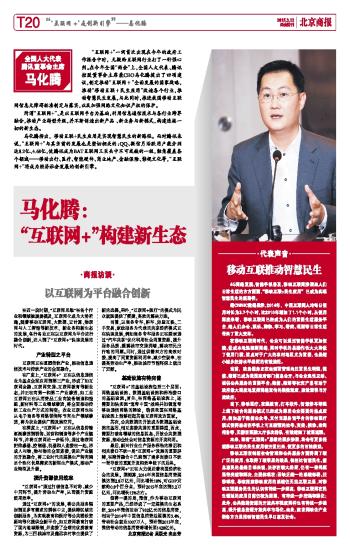 第T20版:两会特刊·马化腾:“互联网+”构建新生态
