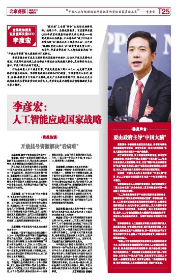 第T25版:两会特刊·李彦宏:人工智能应成国家战略
