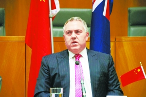 25日,在澳大利亚首都堪培拉国会大厦,澳大利亚国库部长乔·霍基在澳中年度贸易报告发布仪式上讲话。当日,乔·霍基在国会大厦表示,澳大利亚将尽最大努力在3月31日最后期限前就是否加入亚洲基础设施投资银行(亚投行)做出决定。新华社/图