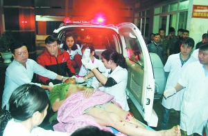 25日,在越南中部的河静省,一名受伤者被医生抬上救护车。位于越南中部的台塑河静钢铁工厂当日夜间发生事故。据官方发布的初步消息,事故造成14人死亡、30多人受伤。新华社/图
