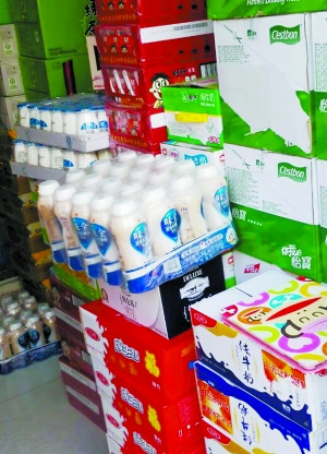 和养乐多被转移至库房不同的是,在上述几家店铺里,味全依旧和其他常温乳制品一样被直接放置在店铺里销售。一位批发商指着搁置在地上的味全说:“味全你要多少可以从这里直接拿走。”