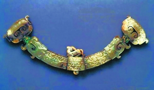 在青铜器表面,主要表现为铜质氧化产生的铜锈。这种铜锈是经过地下温度、湿度共同作用及各种气体长期侵蚀而形成的。所以这样的锈斑极其细腻,粘结力也极强。
