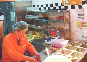 周五晚上6点40分左右到达比格比萨东直门店,餐厅位于商场三楼,等位的消费者很多,入口通道内只摆了一张双人沙发,门口十分拥挤,还有消费者在等位区直接抽烟的情况。可能是为了节省人工,餐厅叫号、付费、开发票等工作均由前台一名工作人员负责,叫号环节经常因用餐人数等问题出现混乱。由于正值用餐高峰,店内消费者非常多,取餐过程中经常出现没有食物甚至没有餐具的情况。