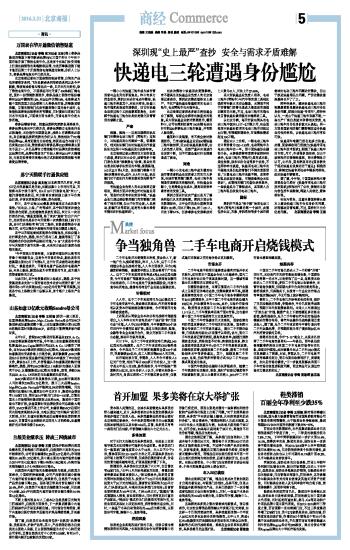 在业内看来,这意味着国标将从根本上解决快递三轮车合法身份的问题,进而解决监管难题,不过,国标何日出台仍是问题。北京商报记者 李铎 王运