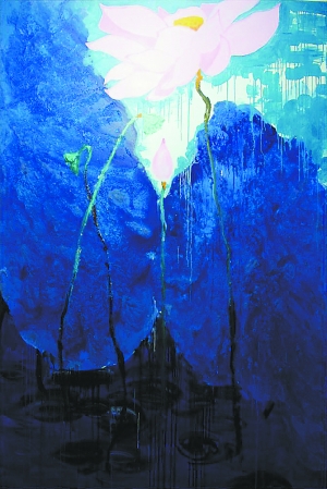 一次夜半,我在京城办完诸事,来到他北京的画室,一进门我被震住了,在他400多平方米的工作室的墙面上竟然挂着近百幅表现荷花系列的作品,都是写意手段表现主义油画,被他自称为写意油画。面对如斯作品,采取何种学术语言来界定其绘画风格已不重要,重要的是这些作品带给观者的感动与觉悟。这些莲荷意境的作品可谓意境深邃、静谧;冥冥的朦胧中带有几分神秘与空灵。作品用色极为纯粹,红即是红、蓝即是蓝、空即是色、色即是空。绿的油绿欲滴、粉的似少女羞红。画面构图多有禅意,荷之粉艳秀色可餐且不忍食之,莲子佳果肥硕诚实可作传宗之种。塘之水蓝、茎之翠绿皆令人观之身心为之淡定,赏心悦目之余不禁叹世间俗客何为终日因贪欲之心而纠结,以致过得身心忐忑,难以释怀矣。