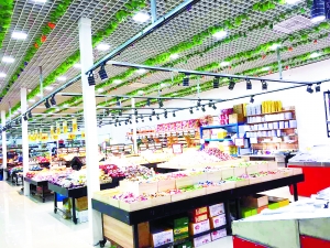 整个首食生鲜面积超800平方米,杂货、粮油、水果、蔬菜、水产等商品都整齐地陈列在商铺中,除了生活食品外,与超市西端相连接的还有药店、宠物用品商店、花店、洗衣房,而在北京商报记者走访时,恰巧听到这样的对话,老爷子说,“我这两天身体不舒服,您看看我买点什么药能见好”,而药店工作人员扶着老爷子劝说:“您多出去锻炼几天就行啦。”