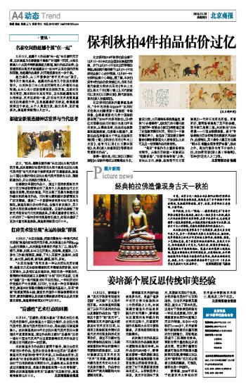 日前,北京古天一拍卖公司在朝阳公园8号院举办了2016秋季拍卖会精品展,现场展出了今年秋拍中的部分精品,包括藏传佛造像、唐卡、法器,另有部分文房杂项、玉器作品。