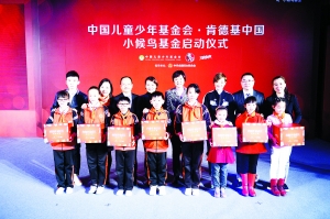 11月24日,百胜中国肯德基宣布向中国儿童少年基金会(以下简称“儿基会”)捐赠350万元,双方共同启动专为留守儿童提供关爱的公益基金“中国儿童少年基金会·肯德基中国小候鸟专项基金”(以下简称“肯德基中国小候鸟基金”)。百胜中国肯德基品牌CEO屈翠容(Joey Wat) 、全国妇联副主席、书记处书记邓丽、中国儿童少年基金会秘书长朱锡生与明星公益大使梅婷、董子健等嘉宾一起,为肯德基中国小候鸟基金揭幕。
