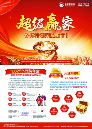 在当下金融市场动荡,利率下行且家庭压力日趋沉重的趋势下,“超级赢家”保障计划帮助客户锁定未来稳稳的幸福,为客户提供一笔稳定、安全且可增值的财富,保障客户拥有高品质的退休养老生活,守护客户想要的未来!使其成为人生真正的赢家!