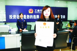 日前,工商朝阳分局颁发了朝阳区首张“两证整合”个体工商户营业执照。该执照的颁发标志着朝阳区“两证整合”营业执照发放工作顺利启动。