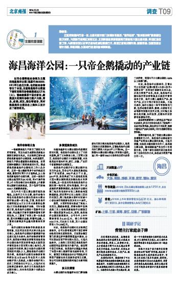 近几年的中国主题公园市场迅速崛起,以海洋文化为主题、海洋动物为特色的海昌海洋公园也迅速在主题公园市场占据一席之地。目前,海昌海洋公园有超过10万立方米水体量和总数超5万只各类极地海洋动物,同时在繁殖方面,海昌海洋公园是中国最早引进白鲸、帝企鹅并开展专项驯养繁育的研究机构,人工繁育了世界上第一头伪虎鲸、国内首例跳岩企鹅、阿德利企鹅,人工繁育北极熊及帝企鹅的数量居世界之首。