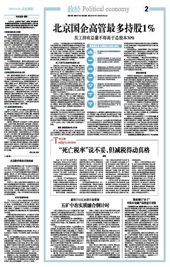 北京国企高管最多持股1%