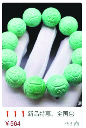 北京商报记者调查发现,目前在微信拍卖上的拍品大多在5000元以下,上万元的较少。但是同一类别的拍品,价格却有很大差异。在微拍堂中,品质相似的松石手串,从564-2400元均有;较为稀有的碧色和田玉手串只竞拍到276元,印章的价格却有1200元。
