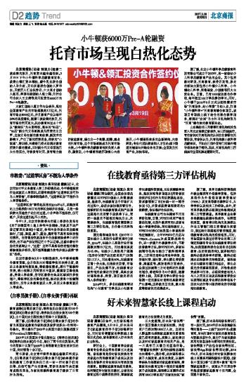 北京商报讯(记者 刘亚力)随着二孩政策的放开,托育资本越来越活跃。3月19日下午小牛顿科学启蒙教育宣布,获得由领汇资本领投,蒙牛乳业联合创始人孙先红、开元仪器联合创始人罗华东、天使百人汇会长乔迁、中大英才创始人赵君、学通在线创始人范士闯、先行公司合伙人王立炜等共同投资的6000万元Pre-A轮融资。