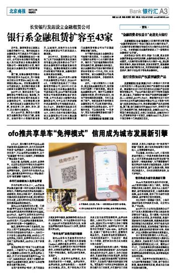 ofo推共享单车“免押模式” 信用成为城市发展新引擎