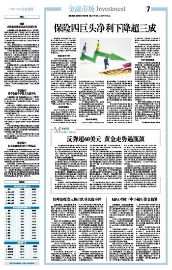 保险四巨头净利下降超三成