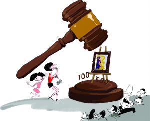 “400元、500元,还有人加价吗?成交!”这一幕来自北京来福士商场。一场名为“青年画家品鉴会”的活动中,在工作人员热情洋溢的“耐心介绍”下,现场不少人频频举牌,成交价格大都在500元左右浮动。有业内人士指出,“现场拍卖的作品基本都是行画,也就是没有收藏价值的装饰画,若过分强调升值潜力就存在欺诈嫌疑。另外,这一活动虽然采用的是“无底价互动”形式,但实质上就是拍卖行为,严格来说,举办拍卖会需要具有拍卖资质并且报备,还要有国家注册拍卖师,否则程序并不合法”。