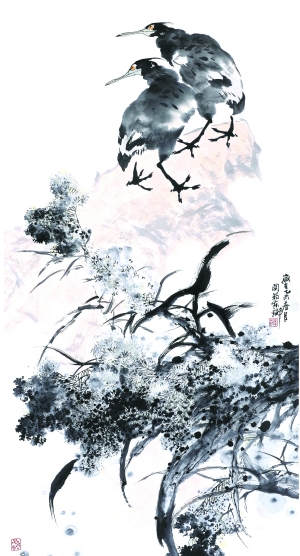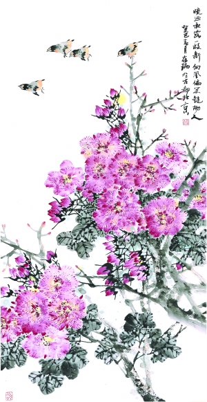 郭东瑞自幼爱好水墨丹青,后师从中央美院郭怡孮教授等名家,上个世纪90年代以来,他多次在国内外举办个人画展或联展,在京城书画界早已享誉蜚声。近十几年来,作为北京教育学院崇文分院的美术系主任,他先后开办了美术大专班和国画研修班,为社会培养出了不少的美术教育骨干和职业画家。他信奉的“艺术源于生活”成为了他的口头禅,这些话说出来容易,但要真正落实到具体的生活细节中,却不是谁都能做到的。在过去的近20年里,中国当代艺术的发展纵横跌宕、潮起潮落,各种形式的具有美术元素的风潮给人们的头脑带来了一定的冲击,身处美术圈的郭东瑞当时也风华正茂,但他却能够不为潮流所动,在浮躁的社会气氛笼罩下,仍沉潜在传统艺术的学习当中,现在看来,正是当初的付出,为他今天构建自己的“花鸟王国”奠定了坚实的基础。