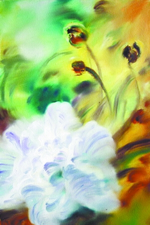 杨学宁的花不仅仅是把花的形态得到了集中准确、优美的展示,更是花的符号得到了某种解放的价值和自由的延伸。透过杨学宁的花,我们可以看到这样一种情景,花的符号在自我的繁殖、花的象征在自我的伸张、花的所指在自我的言说,因为时间在不断的流逝,岁月在不停的更迭,运动在永恒的往返。因为四季之轮回,季节在婉转,城市与人生生不息,从凋零到开放,文化、历史与城市在花开花落中相诉衷肠,杨学宁的花便在不停地运动,由此,符号自由地生成了新的意义,芙蓉花开便具有了多样阐释与解读的可能,那是悲春伤秋的花瓣在凋零,那是新的希望的生命在诞生,那是城市精神的象征在延续。