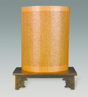 “蝉翼竹簧”作品《金刚经》,在“第三届中国浙江工艺美术精品博览会”上获得“明清居杯”金奖。
