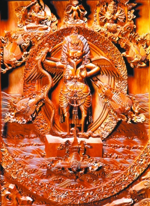 此次展览集合了童永全与涌泉制艺工作室十六年来的精选作品,共计展品88件。展品按工艺材质分为三大类:一、金铜唐卡与造像,是使用古法铸造工艺、金汞鎏金工艺进行的藏传佛教造像艺术创作;二、木刻工艺唐卡,是以绘画唐卡、刺绣唐卡、堆绣唐卡、珍珠唐卡为基础的创新性探索;三、玉雕工艺唐卡,是木雕工艺唐卡成熟基础上的材质延伸。