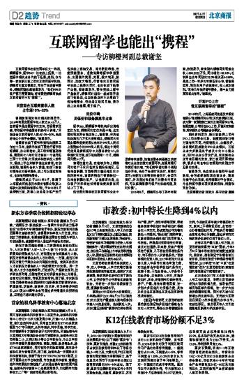 互联网留学在最近两年红火一阵后,顺顺留学、留学360一边在线上拓展,一边把留学相关业务向线下拓展。然而,作为第一家在新三板上市的互联网留学机构,柳橙网的意志很坚定,专注于在线留学服务。柳橙网副总裁谢坚表示,“我们99%的客户都不需要面询,将来要把柳橙网做成互联网留学中的‘携程’”。