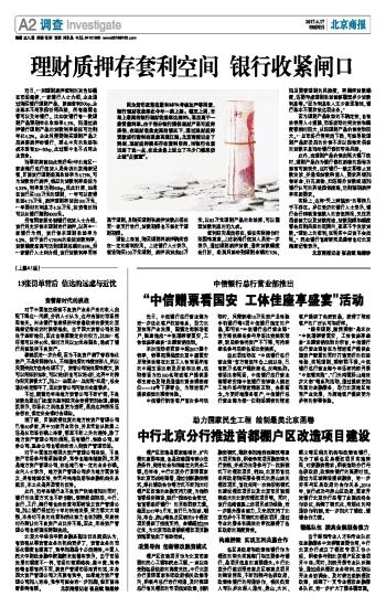 理财质押存套利空间 银行收紧闸口