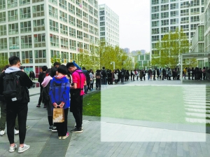 4月18日,北京商报记者来到位于建外SOHO的一点点奶茶店,这是记者第二次来到这里,此次记者选择在周末时间,以考察排队购买现象是否依然存在。北京商报记者发现,与工作日相比购买人数相对减少,但队伍依旧很长,依旧呈L形排列。