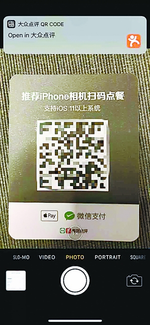 以王兴和 Tim Cook 相约的这家大壶春生煎店为例,到达餐厅后,直接打开已升级为iOS 11的iPhone或iPad自带的相机,扫描桌上的二维码,就能够进行点餐和Apple Pay支付了。