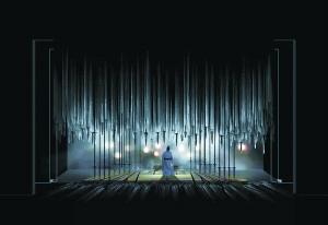 与此同时,舞美也是简约的景置小实大虚,通过多维的光置造境渲情,舞台时空自由转换,让舞台设计更显灵动,以明快的色彩、灵动的设置使“景、光”手段既能分别展现其个性,又有机地融合到一个整体中,释放景置光色语汇更多的可能性,以体现艺术大写意、舞台意象之美学精神,探求当代话剧舞台“景随人移”的意境。
