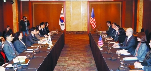 据报道,当地时间1月31日上午9时起,韩国产业通商资源部通商交涉室长俞明希和美国贸易代表办公室(USTR)助理贸易代表迈克尔·比曼代表双方带团出席在首尔小公洞乐天酒店进行的协商。