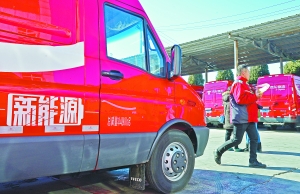 京东集团总部, 一辆新能源物流车经过,白色的“新能源”字样在红色的车体上格外醒目。这些物流车穿梭在北京的大街小巷,“绿色之路”从北京亦庄到整个首都不断“延展”。1月25日下午,京东集团董事局主席兼首席执行官刘强东通过今日头条的个人账号发布消息称,目前进出北京的所有京东自营物流车已全部换成电动新能源车,实现零排放,将绿色减排落到实处。实际上,像京东这样的企业在开发区不是少数,他们已成为开发区打好蓝天保卫战的坚实后盾。(见5版)陈伟/摄