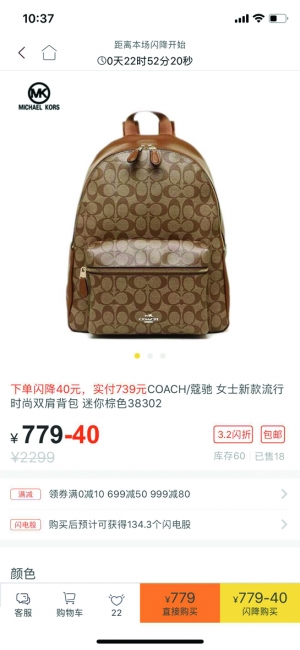 张先生还提到,自己所购的耐克鞋,快递显示发货地为福建,并非闪电降价官网所示的公司所在地上海。北京商报记者注意到,闪电降价的PC端官网上描述称,“闪电降价将坚持只卖正品、只卖好货、只卖实惠……”。此外,北京商报记者浏览闪电降价App所售商品的过程中看到,一款COACH(蔻驰)经典C标的双肩背包,显示原价2299元,平台售价为779元,约为3.4折。但页面上将品牌标注为MK(MICHAEL KORS)。