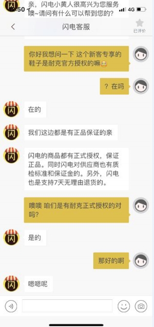 对于张先生的鞋款“是否是正品”疑问,北京商报记者从闪电降价客服人员处得知,“平台所售商品都是正品”。当记者询问上述鞋子是否是耐克官方授权时,客服人员给予了肯定的答复。
