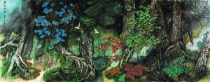 本次展览参展作品110余件,涵盖何海霞先生上世纪60-80年代的作品,题材丰富多样,有山水、花鸟、人物、书法;形式从尺幅硕大的殿堂之作、长卷,到盈尺有余的扇面、斗方,很多题材在目前市场中不多见,藉由此次展览首次集结现身,殊为难得。展品中亦涵盖3件当代玉雕大师玉器,均与何海霞的画作一一对应,是家属精心属意的当代艺术精品,颇具意趣。本次展览中的作品《梦幻成真》尤为值得关注,此幅即为本次展览的题眼,作品尺幅巨大,画工精湛,堪称何海霞先生的铭心巨制。