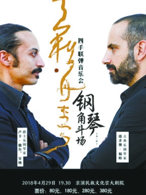 音乐会 | 《钢琴角斗场》 时间:4月29日 地点:京演民族宫大剧院 简介:感受古典与爵士的互相碰撞,感受现场斗琴的激烈氛围。从9岁开始跟随古典钢琴大师弗朗克·索扎尼学习钢琴的塔齐奥·福特,与被公认为意大利爵士乐钢琴家代表人物的卢卡·德尔·安娜共同为观众带来一场精彩的演出。 |
