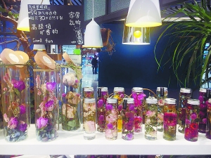 虽置身于购物中心,气味图书馆的入口处却摆满各种花花草草,充满自然气息。除了香水产品的销售与体验外,这家店里还开辟了一个“气味手作坊”,定期开展DIY调香课程,消费者可参与体验“香薰蜡片”、“蜡烛杯”等的制作课程,也可体验专属气味定制,调出只属于自己的独特“香味”。