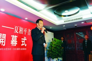当下全国正在弘扬传统文化契机之中,且重阳节刚过,夏老师书法展的举办可以说是正合时宜。这次展览是新闻大厦艺术馆经修缮后的首展,今天的现场也是我见过的新艺馆成立四年来最高朋满座的一场,很荣幸请来夏老这样的重磅书法家。新闻大厦艺术馆隶属于北京日报报业集团,是由北京商报和新闻大厦合办的高端的艺术展示交流平台。希望通过夏老艺术展的成功举办,诚邀业界更多的艺术大家来到新艺馆办展。