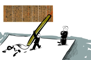 对于当代书坛普遍存在的形式大于内容的现象,艺评家齐建秋向北京商报记者解读了原因:“现在很多书法作品追求的是一种关注度,实际上并没有传统的功底,创作不是从传统的金石、石鼓、汉隶中演变而来,只是从间架结构、布局上有一些自己所谓的特色,或者在尺幅上大做文章,以巨型作品博得关注。”