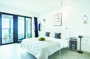 【21°的黑白灰】——临近北海银滩的海景民宿,设计上是质朴的文艺范儿。因为处于高层,视线辽阔,房东配置了海景浴室和阳台,供游客享受海洋风情。