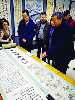 大家在贺良朴艺术研究会会长、贺良朴嫡孙(贺氏第四代传人)、山水画家贺伟国的导览下,仔细欣赏了贺氏五代的书画作品,近距离领略中国书画名家在诗书画印各方面的艺术造诣。数百名观众驻足观赏,流连忘返,赞叹不已,争相与贺伟国交流合影。